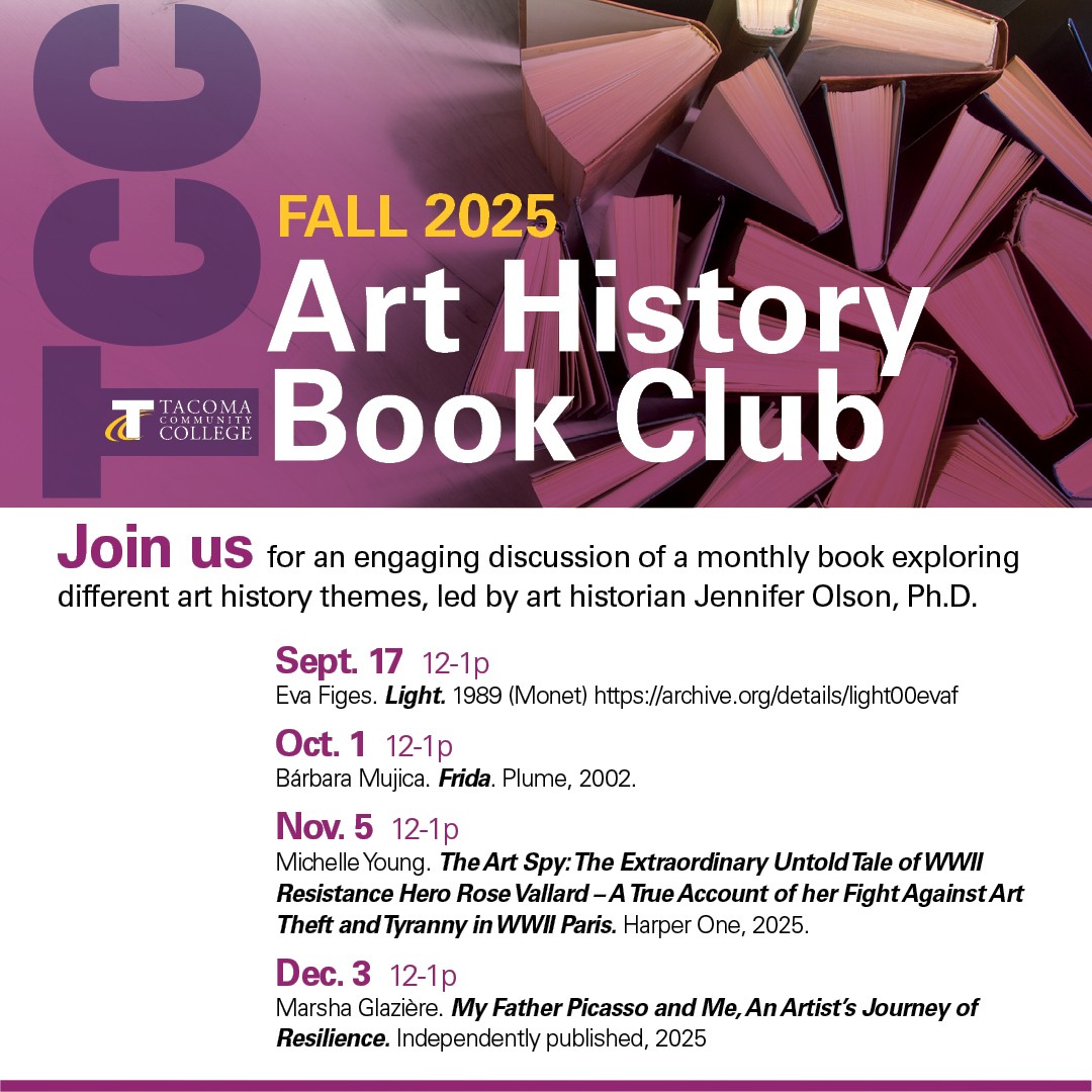 Art History Book Club meetings are held from 12 - 1 p.m. in the Building 4 Art Gallery and online.